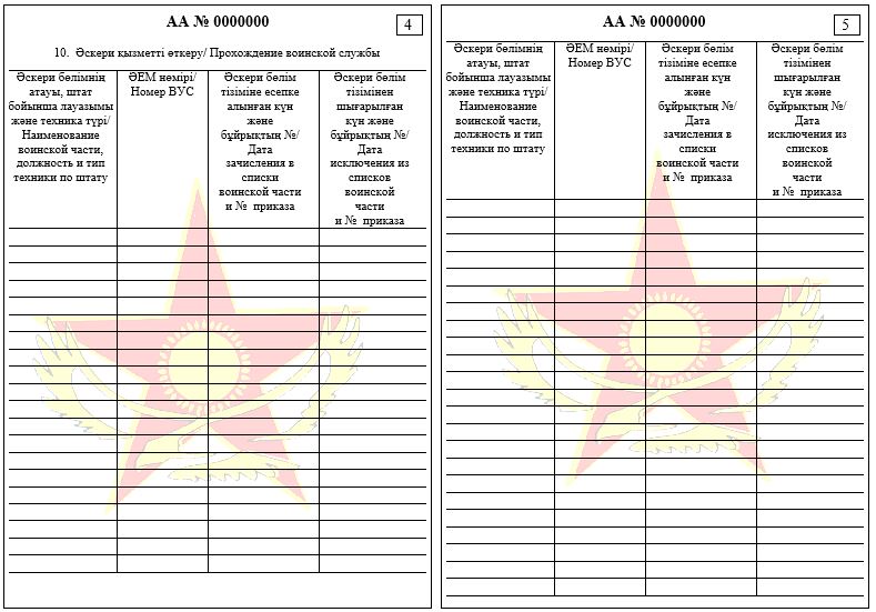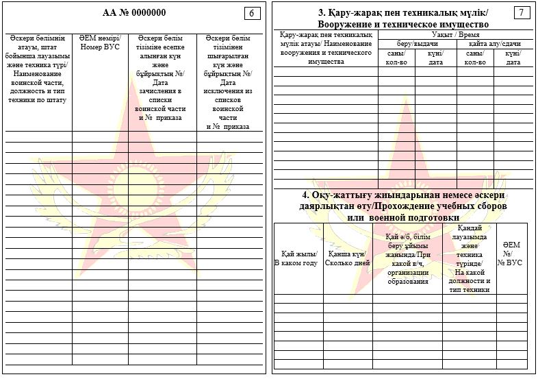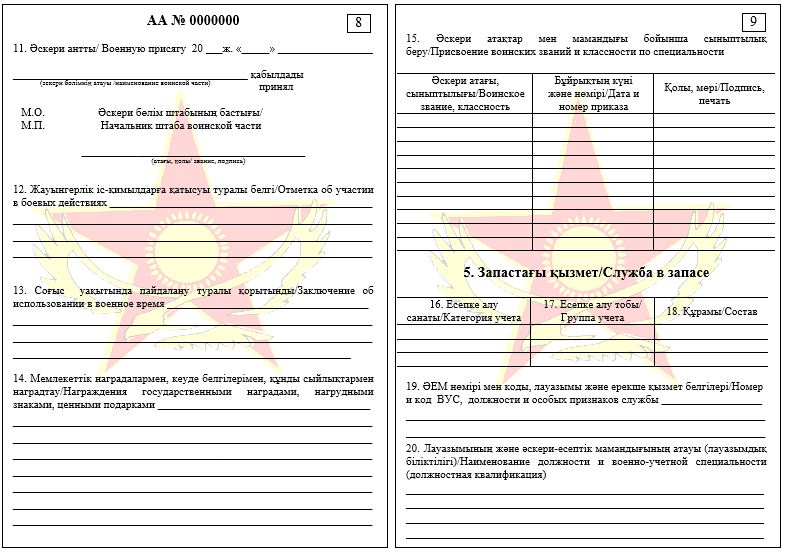 5) в строке «Военно-учетная специальность № ___» (для военнообязанных) записывается цифровое обозначение согласно записям, в военном билете (при наличии);
